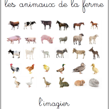 Imagier réaliste des animaux de la ferme pour enrichir le vocabulaire et préparer les activités de lecture.